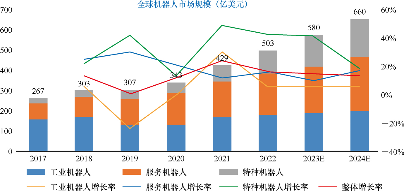图1-1 全球机器人市场规模变化(资料来源:IFR)