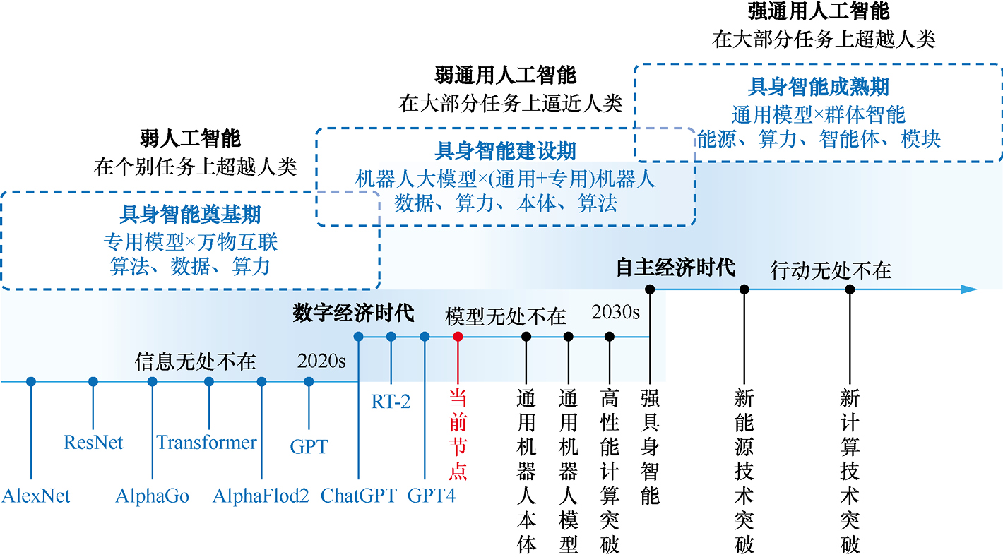 我们将具身智能的发展历程划分为3个关键的十年阶段,如图1-2所示。