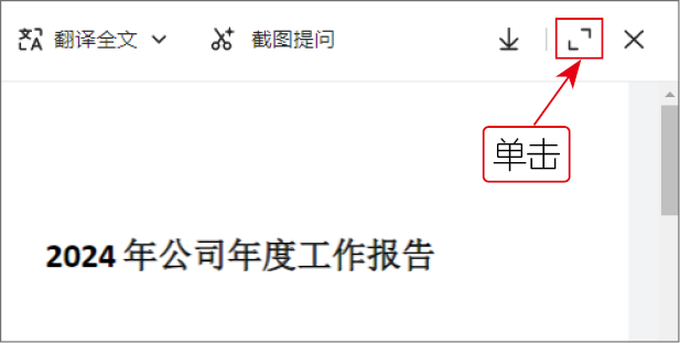 提示:在【AI阅读】模式下,单击右侧窗格上方的【全屏查看】按钮,即可全屏查看文档,如右图所示。