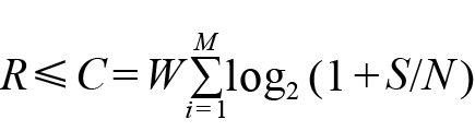 式中,C为信道容量,代表信道的极限传输速率,W为信道的带宽(以Hz为单位),S为信道内所传信号的平均功率,N为信道内部的平均噪声功率。香农定理描述了在有随机噪声的信道中,信道的极限传输速率受固有规律的制约,和信道带宽、信号噪声比(即S/N)有直接的关系。