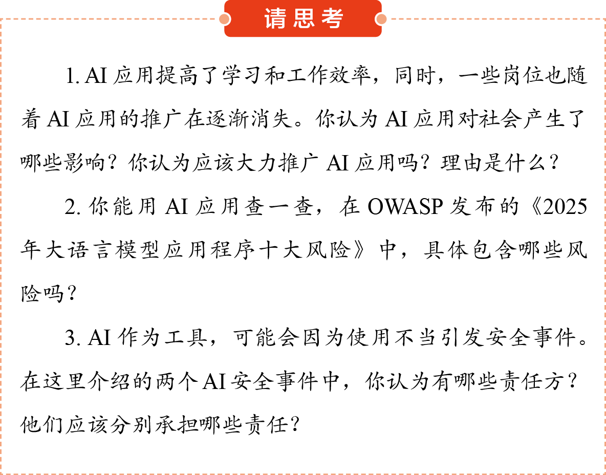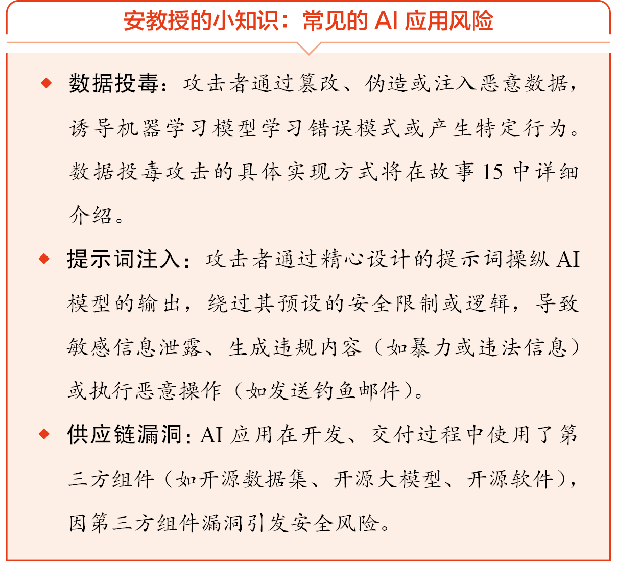 “咱俩想到一块儿去了!”小翼点头道,“我也是担心这个问题,所以上午特意去找安教授请教!现在AI应用慢慢渗透到我们工作生活的方方面面,只有AI应用安全有保障了,我们才能放心地使用。”