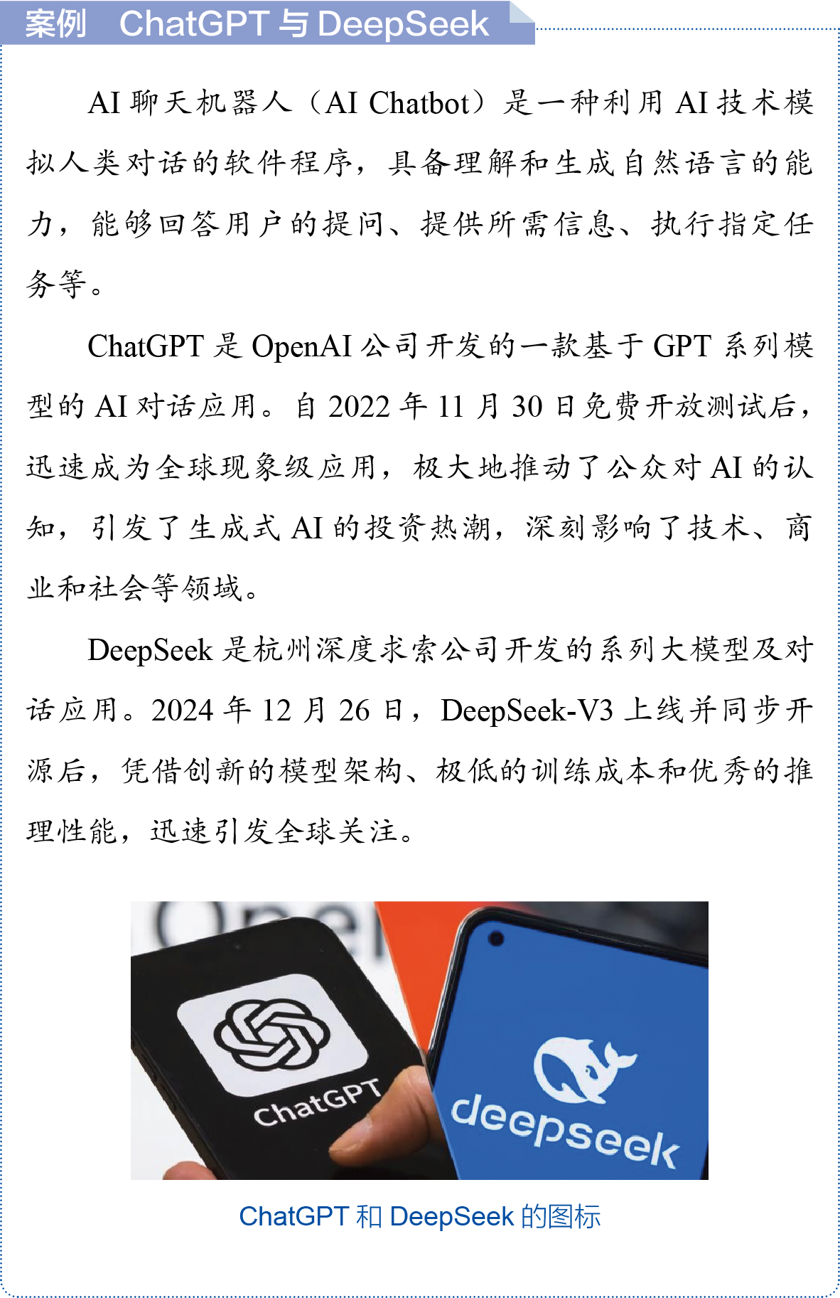 小白顿时来劲了:“还不少呢!最开始用ChatGPT,后来陆陆续续用了一些国产AI聊天机器人,现在我更喜欢用DeepSeek!”