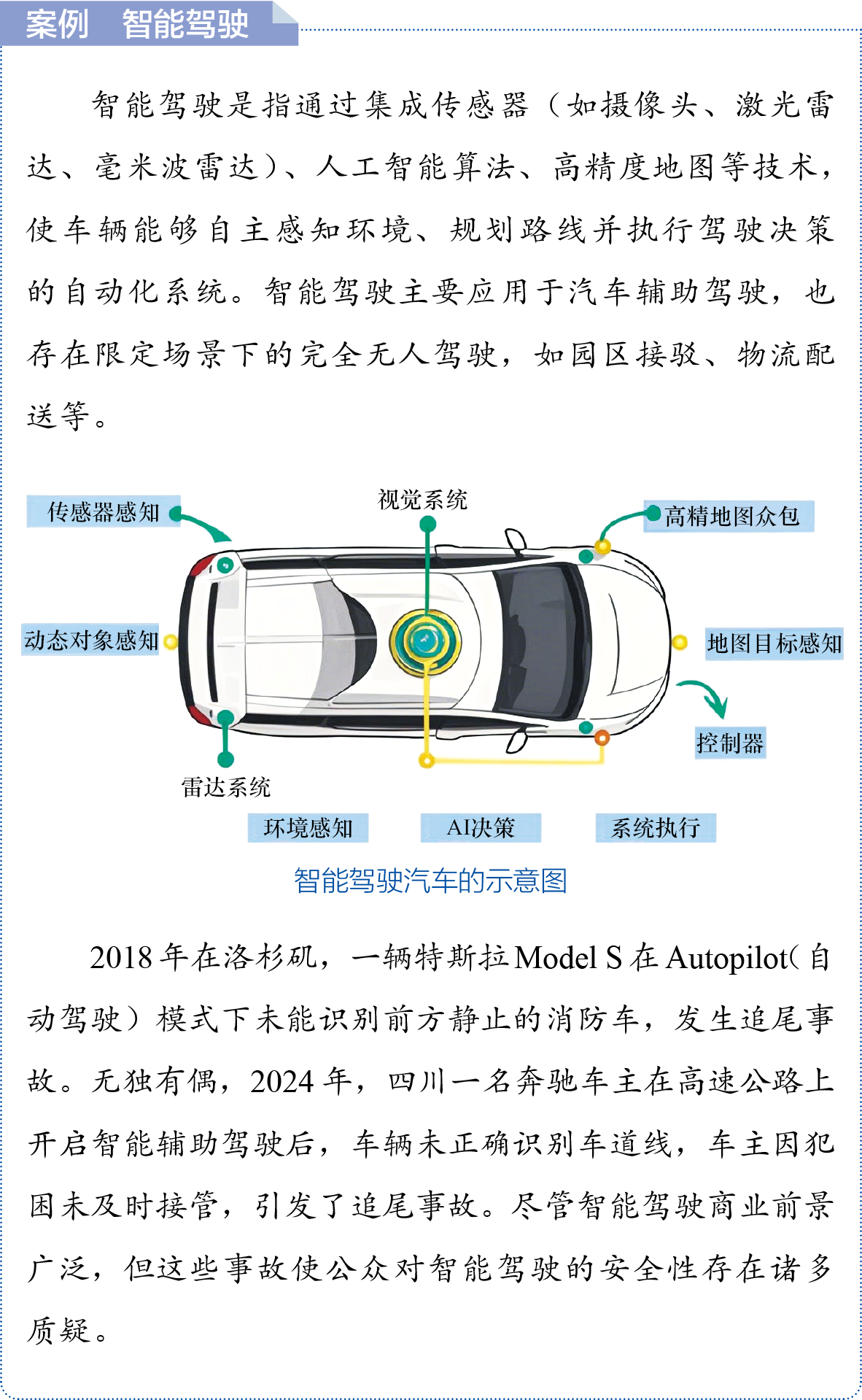 “没错。”小翼想了想,又举了一个例子,“比如现在国产新能源汽车普遍都将智能驾驶功能作为标准配置,这些功能背后是厂家自己研发的AI驾驶算法。智能驾驶非常好用,但一旦出现问题,影响的就是驾驶员和乘客的生命安全!”