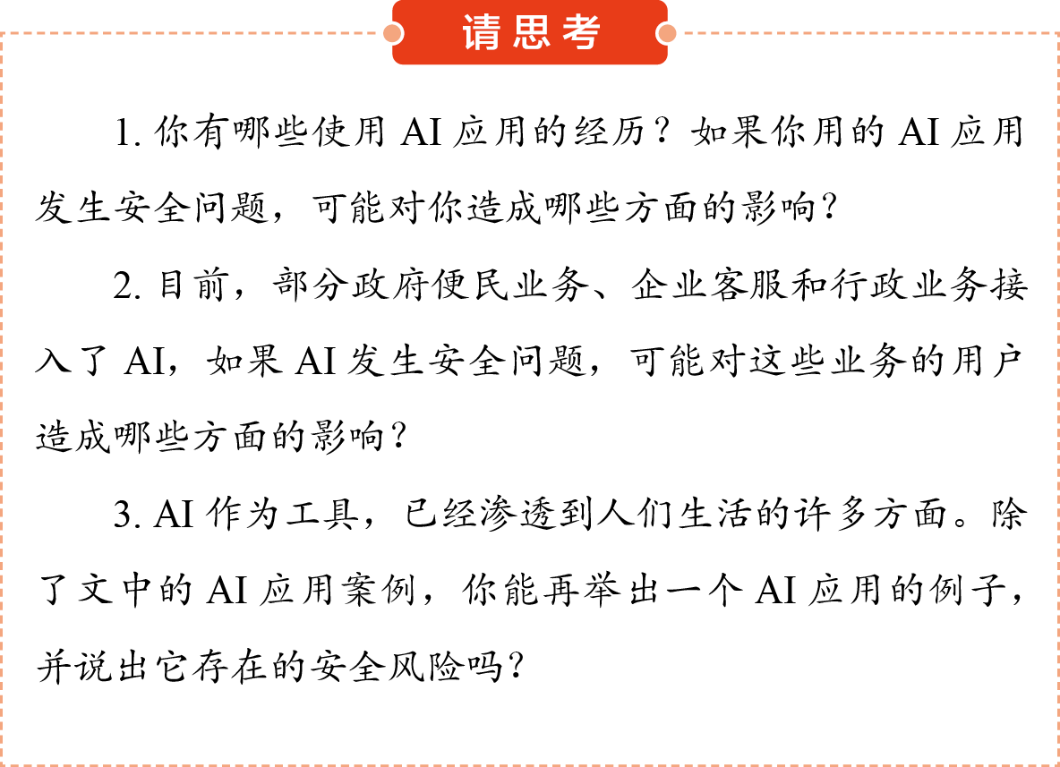 小翼说:“是呀,AI应用渗透到了社会生产生活的方方面面,AI一旦发生安全问题,影响的范围可是很大的。”