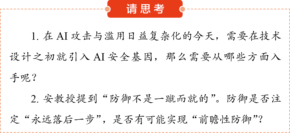 安教授微笑着补充道:“之前的课程中,同学们了解到的一些AI应用安全问题,其实只是冰山一角。”