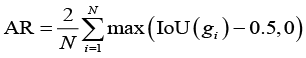 是在每张图像中检测到固定数量框的最大召回率,平均值是根据IoU和类别计算的。