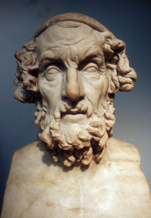 荷马是传说中的一位双目失明、到处流浪的民间说唱艺人,他的许多作品已经失传,但留下了一些描述著名的特洛伊战争的作品,如《伊利亚特》和《奥德赛》。这些作品生动地描述了古希腊人与特洛伊人争夺海上霸权的长期战争,以及那次战争前后的一些故事,其中记述了许多当时人类生活的细节。战争波折起伏,古希腊和特洛伊的英雄们顽强战斗,英勇悲壮。最后,古希腊人使用木马计,将特洛伊城攻破,这就是著名的“特洛伊木马”的故事。