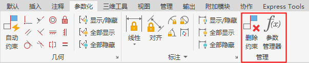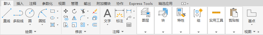 在系统默认情况下,功能区包括“默认”“插入”“注释”“参数化”“视图”“管理”“输出”“附加模块”“协作”“Express Tools”“精选应用”这八个选项卡。那么,用户怎么添加或关闭选项卡,并调整选项卡的位置呢?