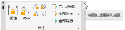 6 将光标放到浮动面板的右上角,系统将显示“将面板返回到功能区”。此时单击此处,则可以使其变为固定面板。