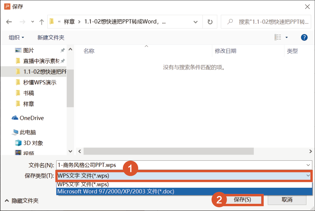 3 在【保存】对话框中选择文件要保存的位置,在【保存类型】下拉列表中选择【WPS文字文件(*.wps)】选项,单击【保存】按钮即可完成转换。