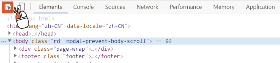 2 单击开发调试工具面板左上角带斜向箭头的图标。