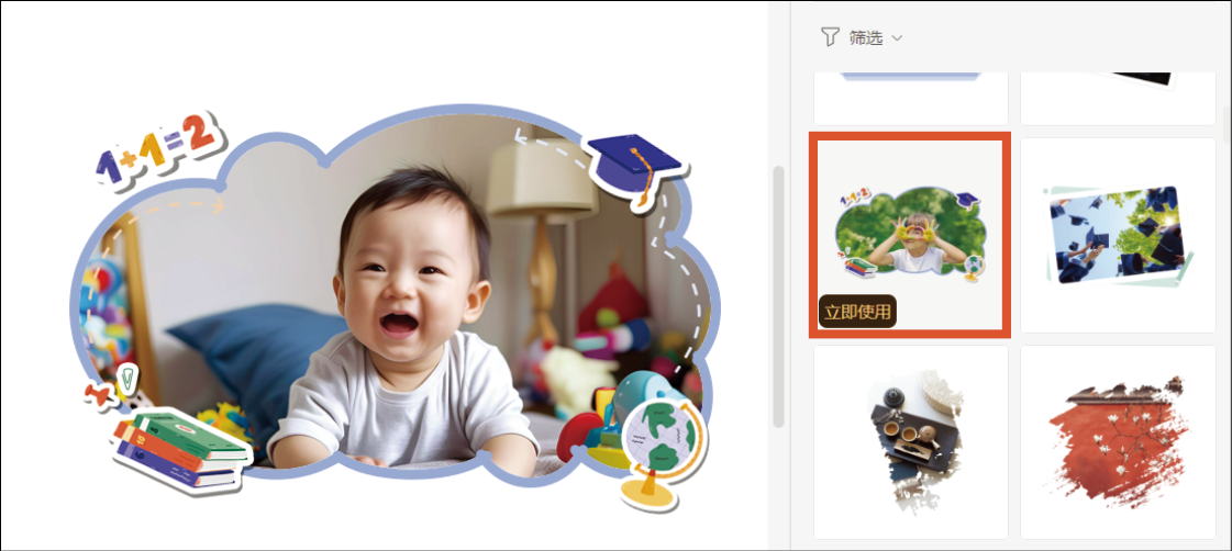 3 挑选喜欢的图片样式,单击【立即使用】按钮,即可一键为图片添加精美的样式。