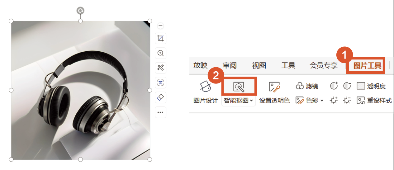 1 选中需要抠图的图片,选择【图片工具】-【智能抠图】命令。
