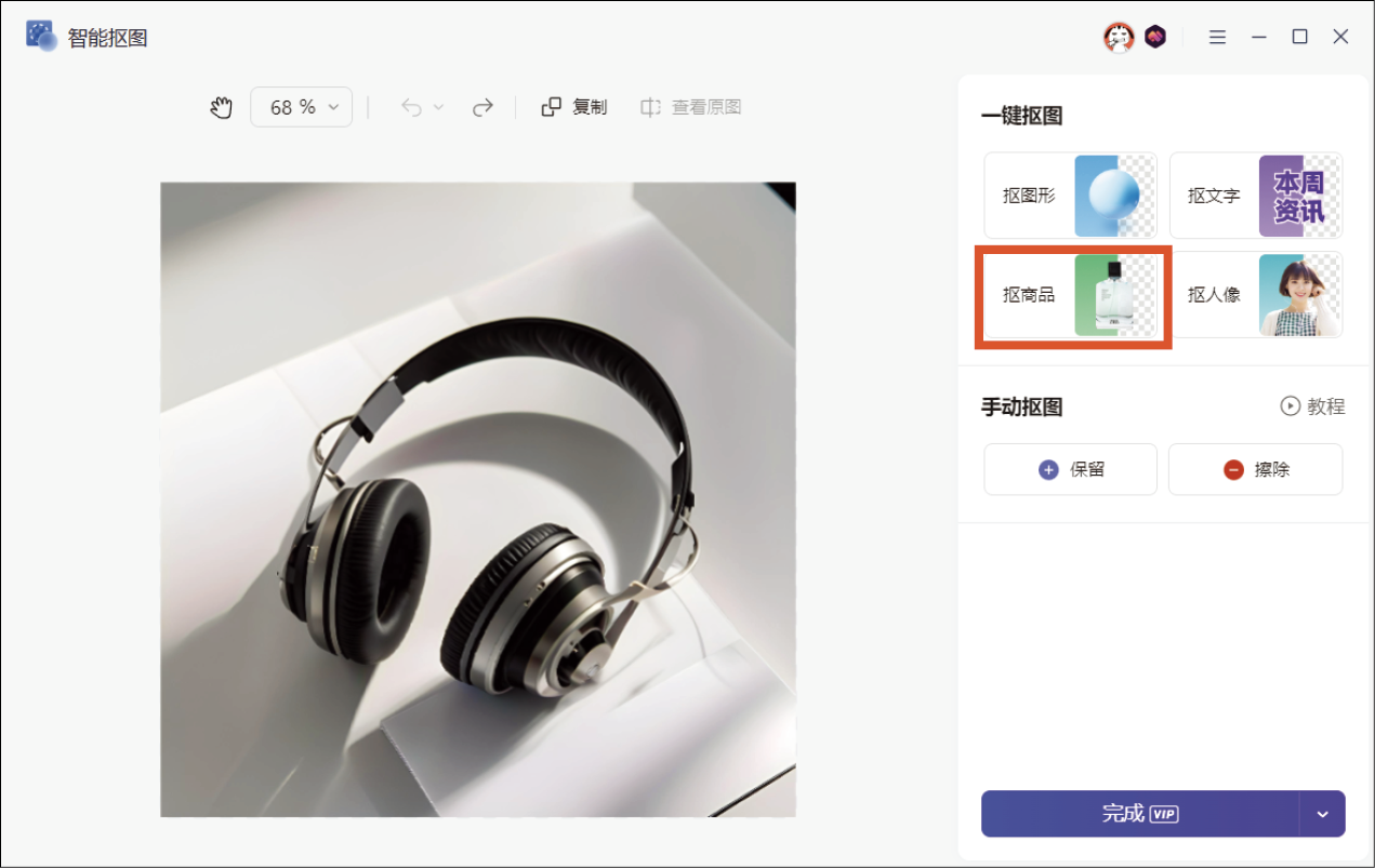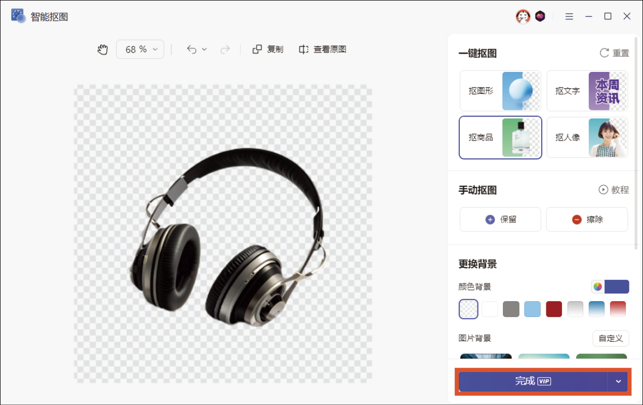 3 等待3~5s后,WPS AI自动将主体抠出,单击【完成】按钮,即可完成抠图。