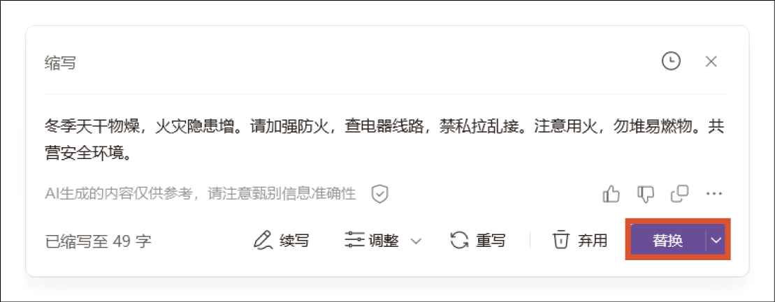 ● 文案缩写:可以删除冗余信息,生成内容以后,单击【替换】按钮即可完成文案缩写。