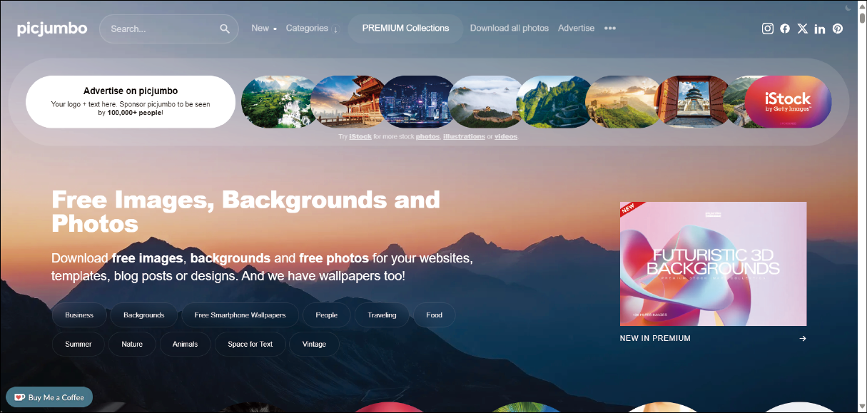 picjumbo是一个国外免费图库网站,图库分类众多,使用者可通过搜索或分类浏览的方式找到各种图片。
