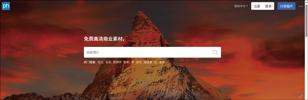 PxHere是一家免费素材下载网站,目前提供了超过100万张高质量摄影作品,可免费用于个人和商业用途,并支持中文检索。