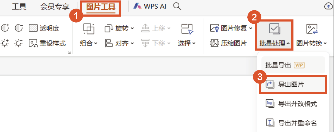 2 选择【图片工具】-【批量处理】-【导出图片】命令。