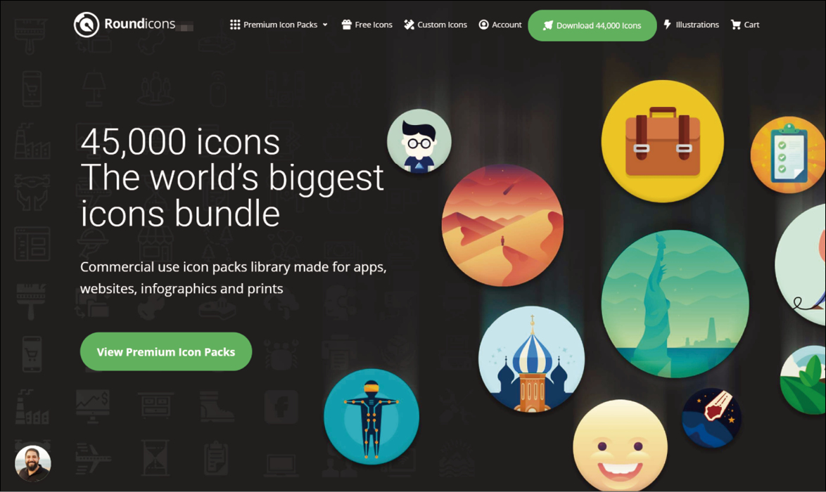 Roundicons拥有非常多的高质量图标,其中包括了一些5D风格全彩图标。