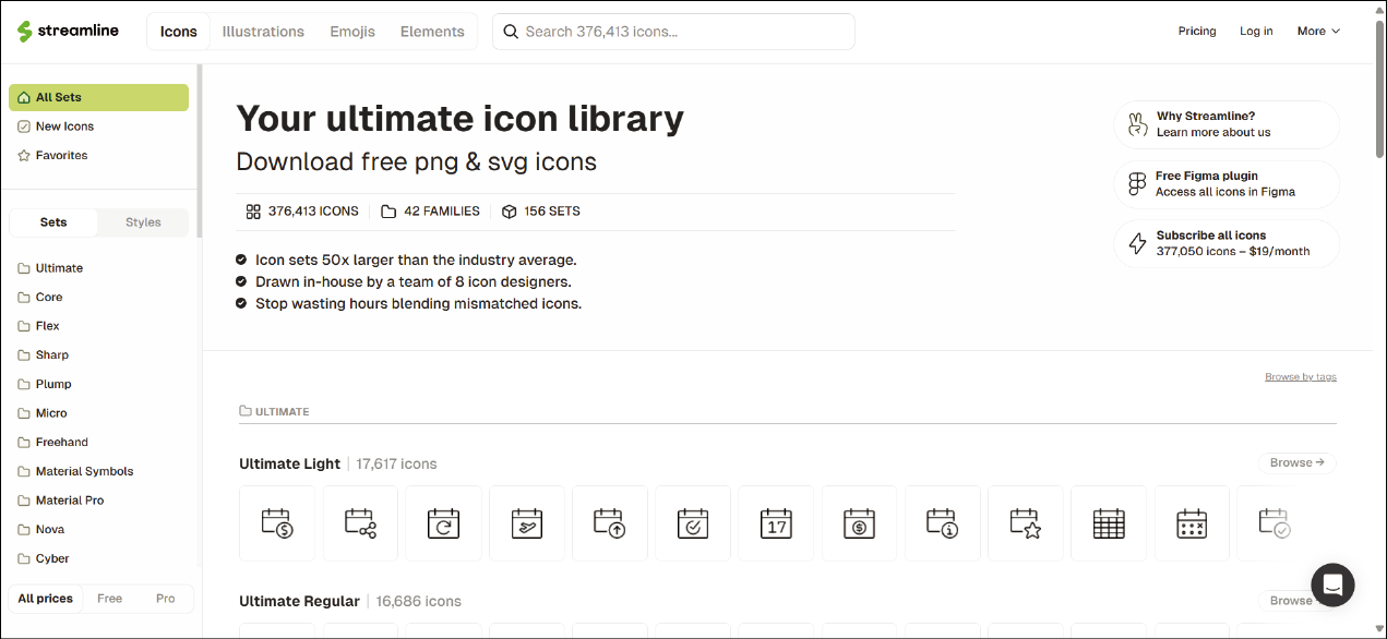 streamline除了提供海量的图标素材,还提供各式各样的表情,部分图标可免费下载。