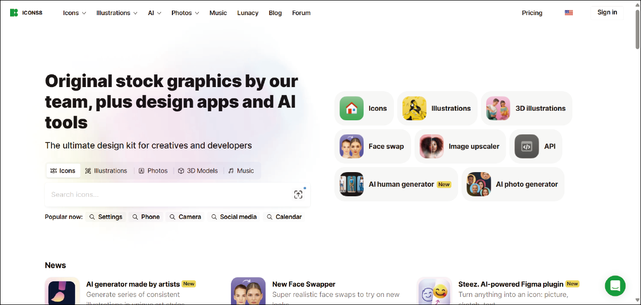 icons8是一个以提供免费的平面设计图案为主的网站,还提供了各种格式和配色供选择。