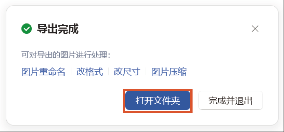 4 在【导出完成】对话框中,单击【打开文件夹】按钮,可以在文件夹中看到所有导出的图片。