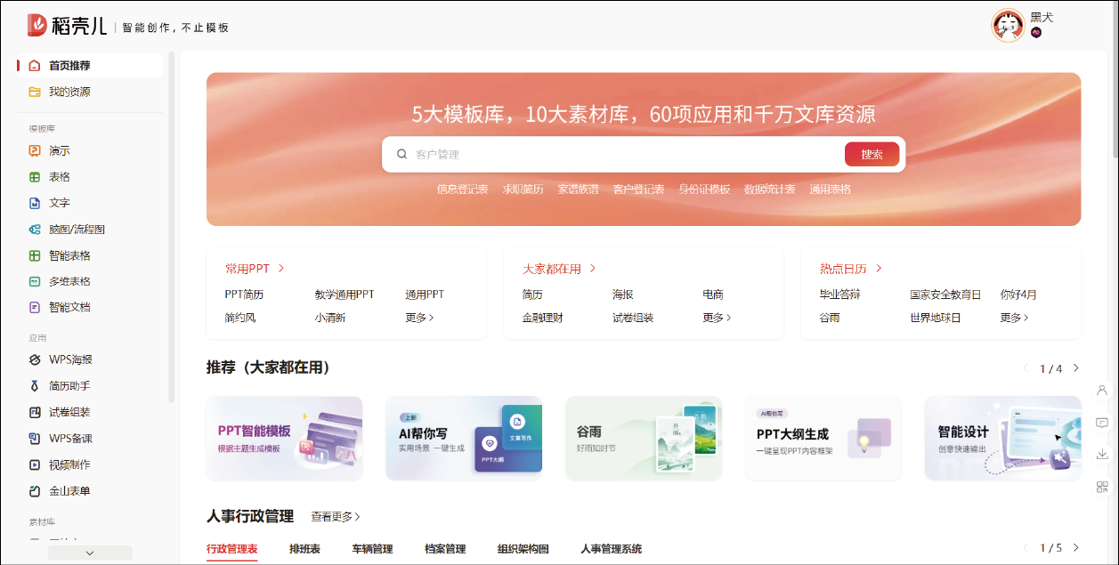 稻壳儿是金山办公旗下的WPS办公资源分享平台,可以在WPS客户端中直接访问。稻壳儿为WPS用户提供各种演示模板、文档模板、表格模板、云字体和图标图片等素材资源。