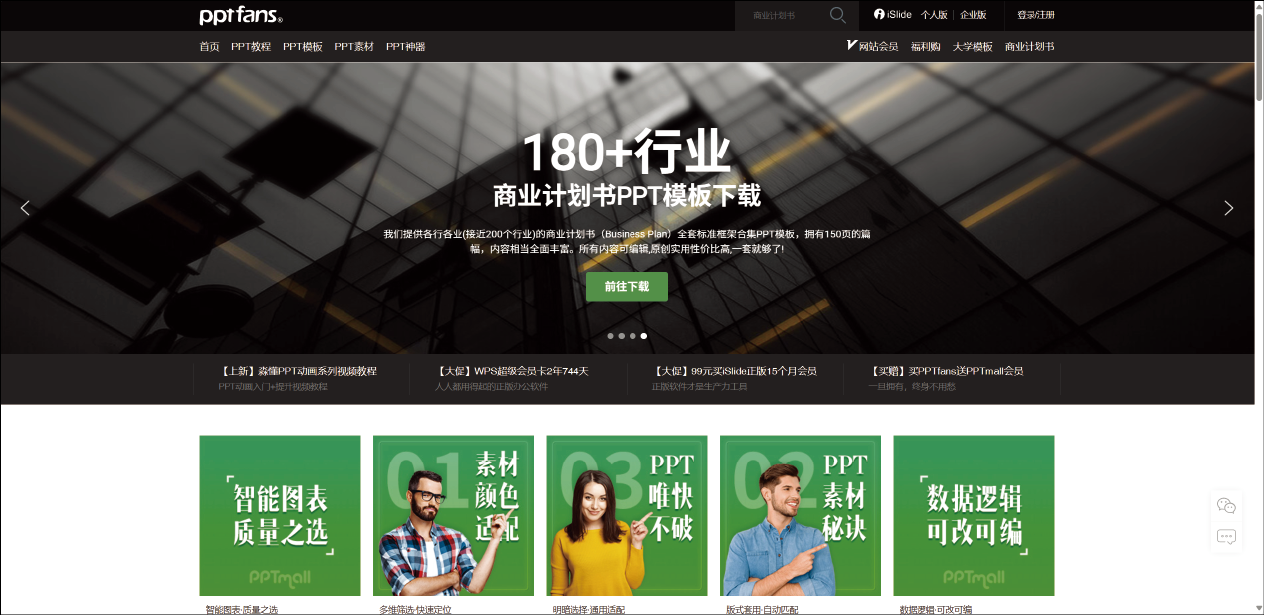 pptfans网站不仅提供高水平的演示文稿设计教程,还有很多高端的演示模板。