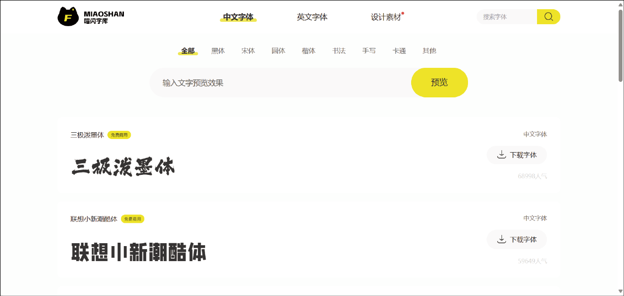 喵闪字库提供优秀的免费可商用字体和无版权字体,并且支持在线预览和免费下载。