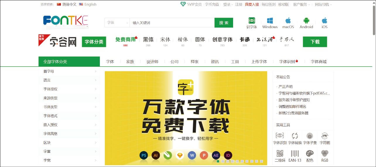 字客网是知名的字体下载与分享网站,提供找字体、字体识别、字体下载、在线字体预览等服务。