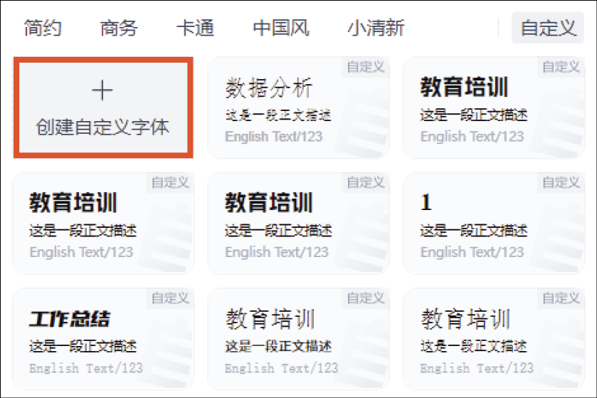 2 如果推荐方案中没有合适的字体搭配方案,还可以选择【创建自定义字体】选项。