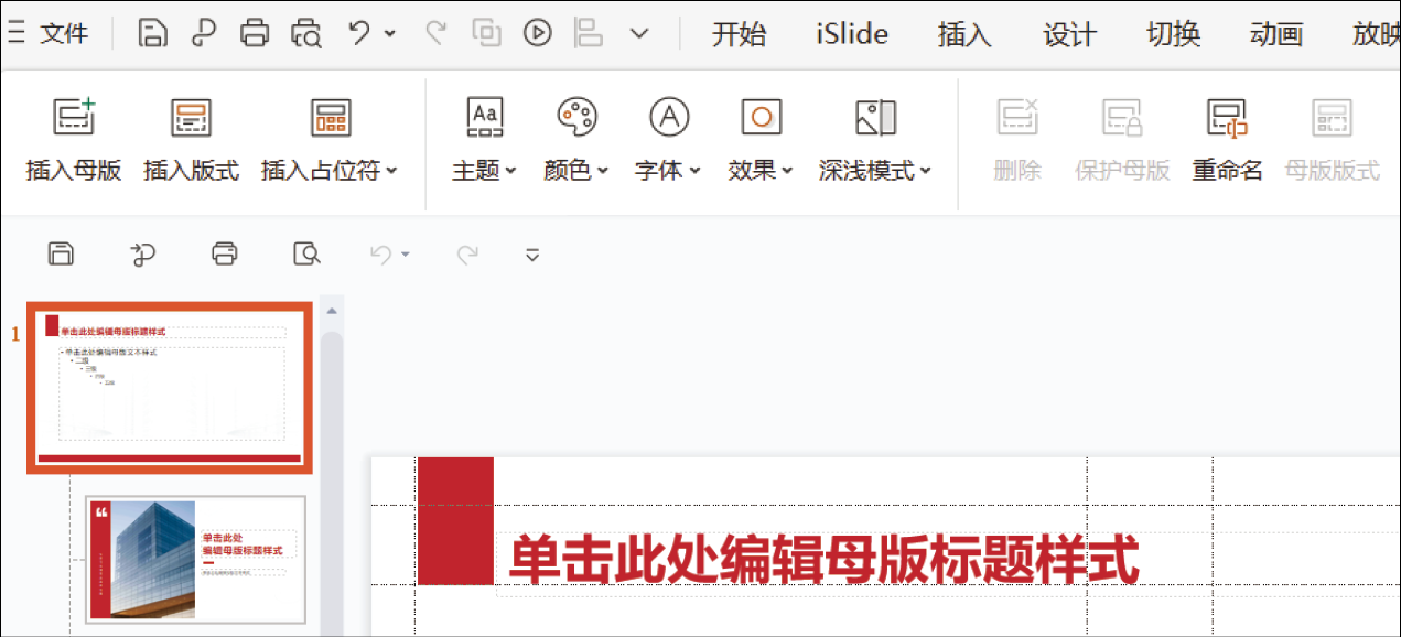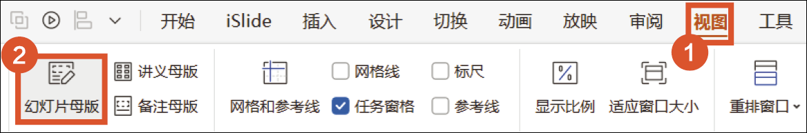 1 选择【视图】-【幻灯片母版】命令,进入幻灯片母版视图。