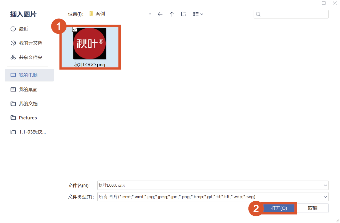 4 在【插入图片】窗口中选择要插入的logo,单击【打开】按钮。