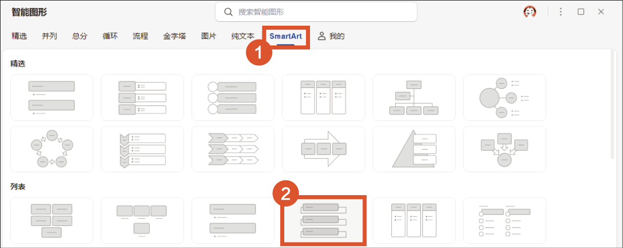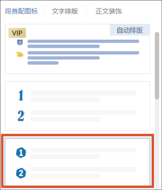 2 在右侧弹出的对话框中可以看到很多排版样式,将鼠标指针放置在对应的样式上可以进行预览,单击选中某种样式,即可按选中样式进行排版。