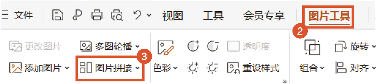 1 按住【Shift】键,依次单击图片进行多选,选择【图片工具】-【图片拼接】命令。