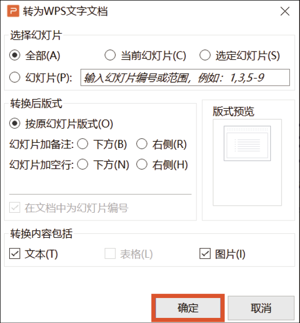 2 在【转为WPS文字文档】对话框中单击【确定】按钮。