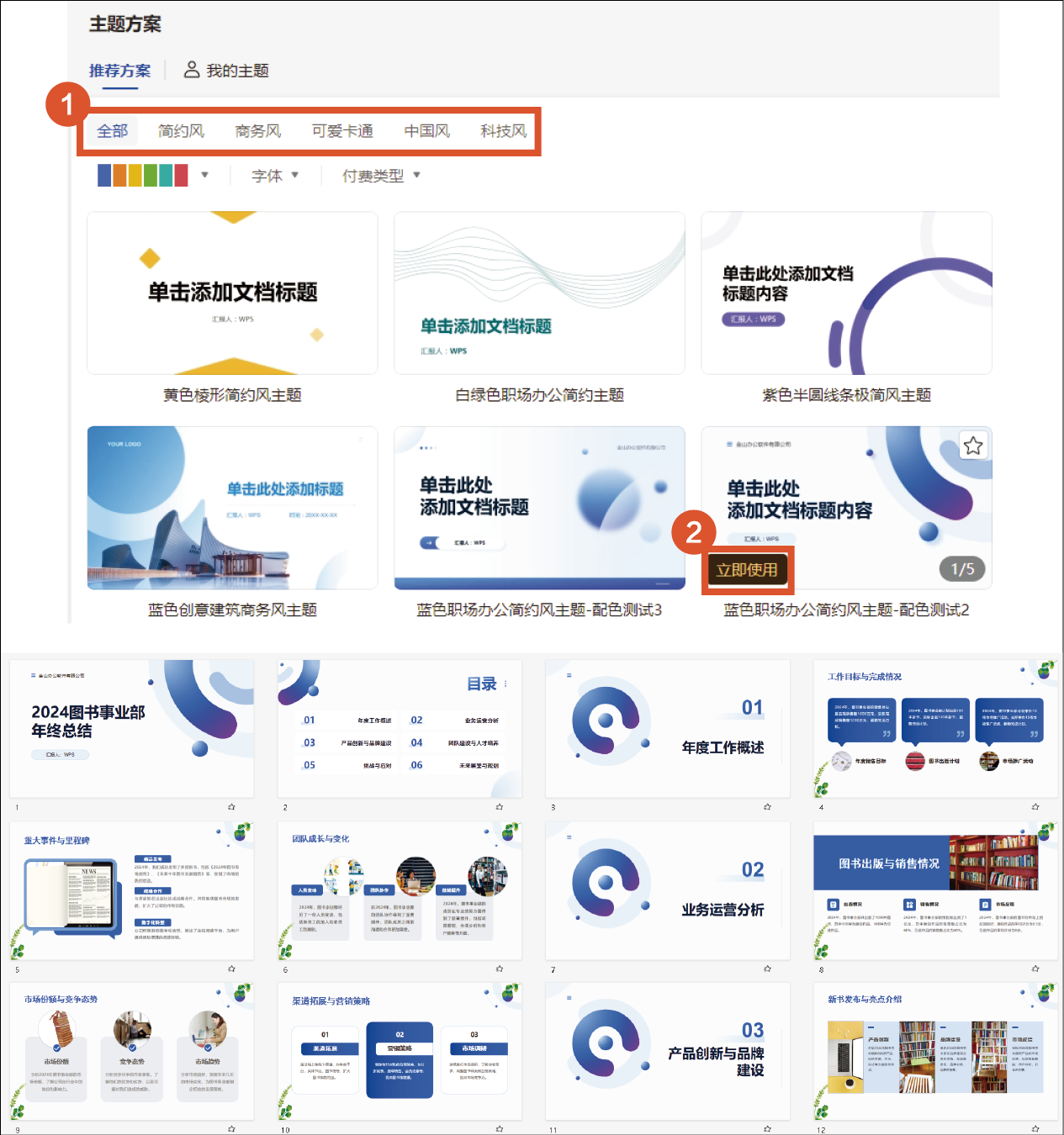 一份合格的演示文稿应包含主题页(封面页、目录页、章节页、结束页)和正文页。WPS演示提供了大量的页面模板,能帮助我们快速完成演示文稿页面的制作。