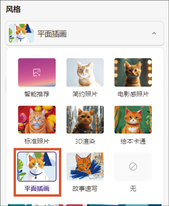 3 选择需要的风格,默认提供多种风格的选择,例如选择【平面插画】风格。