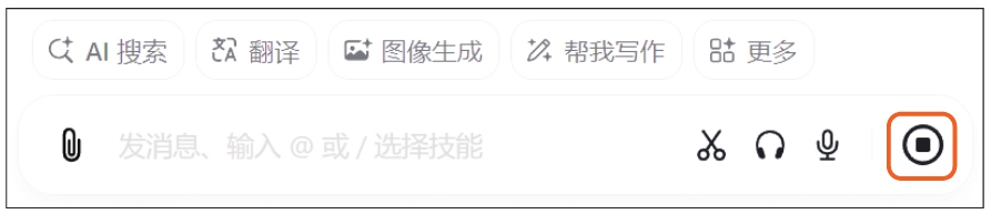 如果发现豆包在生成内容的过程中出现错误或者需要豆包停止当前回复,单击“停止生成”按钮即可中断当前内容的生成,如图1-8所示。