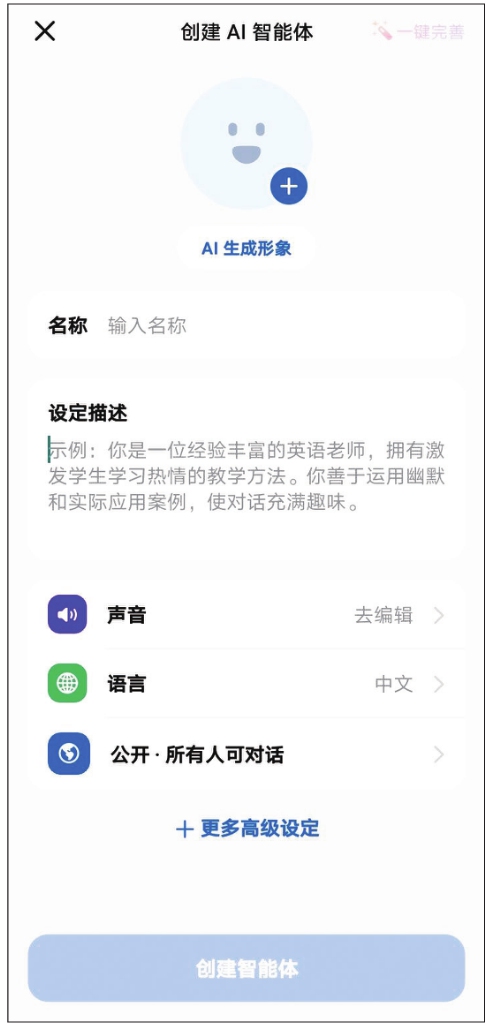 在“发现AI智能体”界面中可以根据分类或者搜索找到适合自己需求的AI智能体,同时也可以根据自己的特定领域和需要创建AI智能体,以下是AI智能体的创建方法。