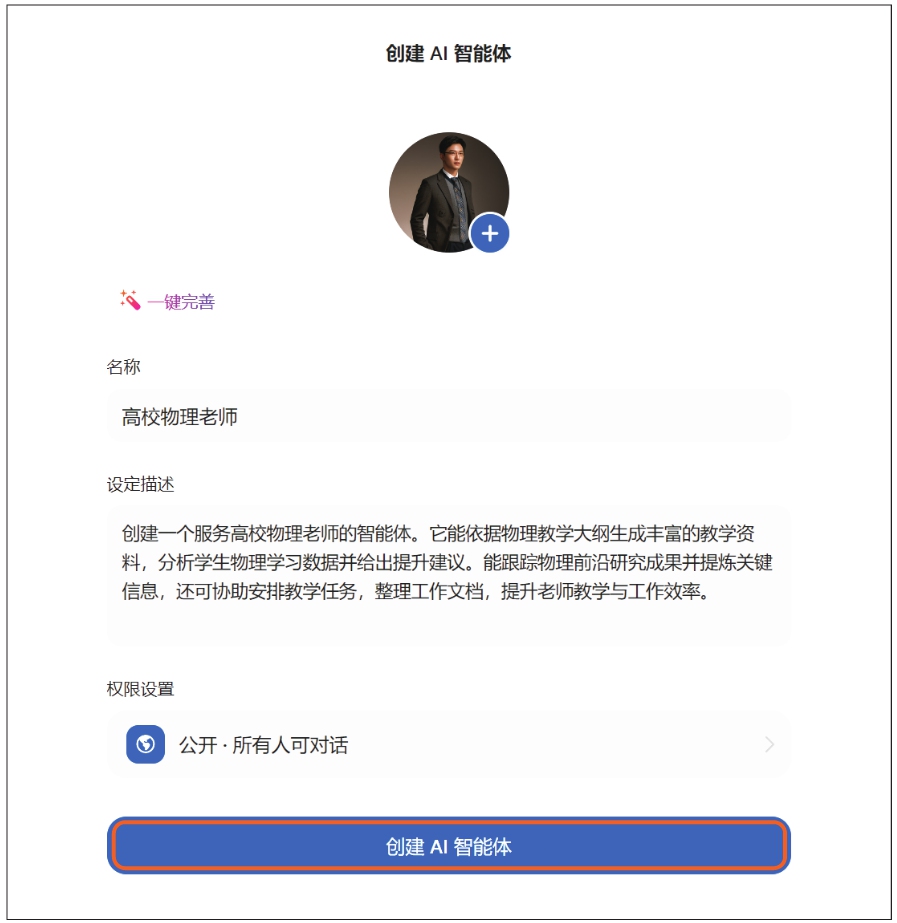 步骤6 单击“创建AI智能体”按钮即可完成该智能体的创建,如图1-62所示。