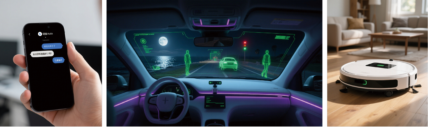 同学们,你们知道我们每天和手机对话时的语音助手、自动驾驶的汽车,以及能自动避障的扫地机器人(见图1-1)吗?它们为什么这么“聪明”?这就是人工智能(AI)的“魔力”!