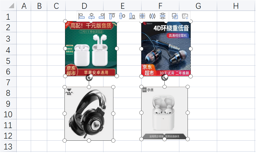重复上述操作,可以快速把多张图片对齐到单元格边框。