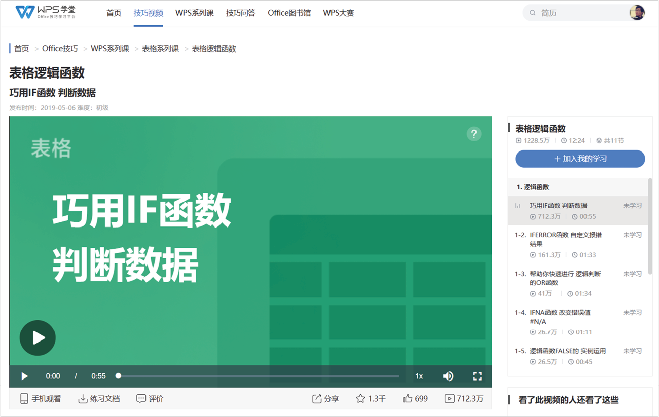 2 在对话框中,单击左下角的【查看该函数的操作技巧】,可以跳转到WPS学院,查看当前函数的视频讲解。