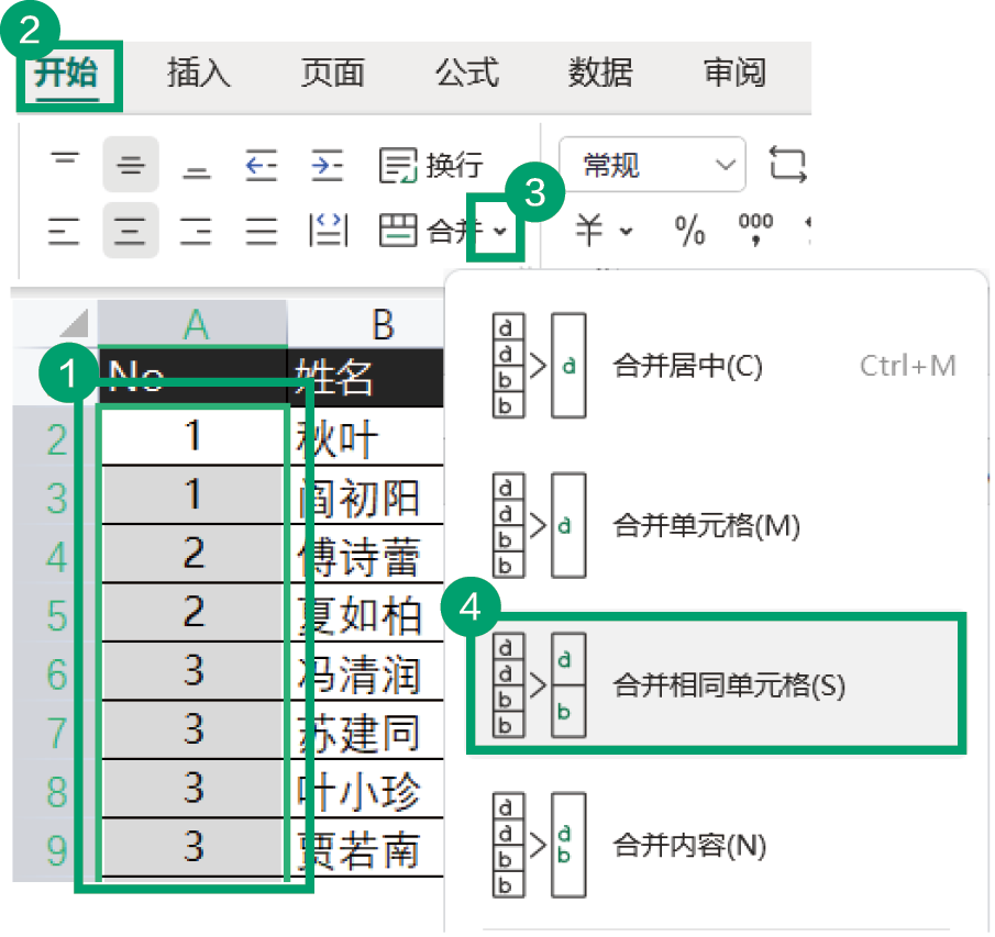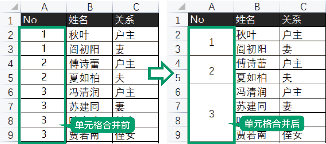 表格中包含大量数据时,把相同类别的数据合并成一个单元格,条理会更加清晰。