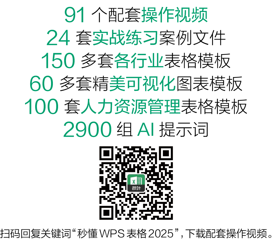 用微信扫描下方二维码,关注公众号并回复“秒懂WPS 表格2025”,可以免费领取我们为本书读者量身定制的超值大礼包,包含: