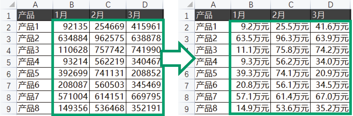 当表格中的数字位数非常多时,阅读起来很不方便。如果改成多少“万”的形式显示,可以有效提升阅读效率。
