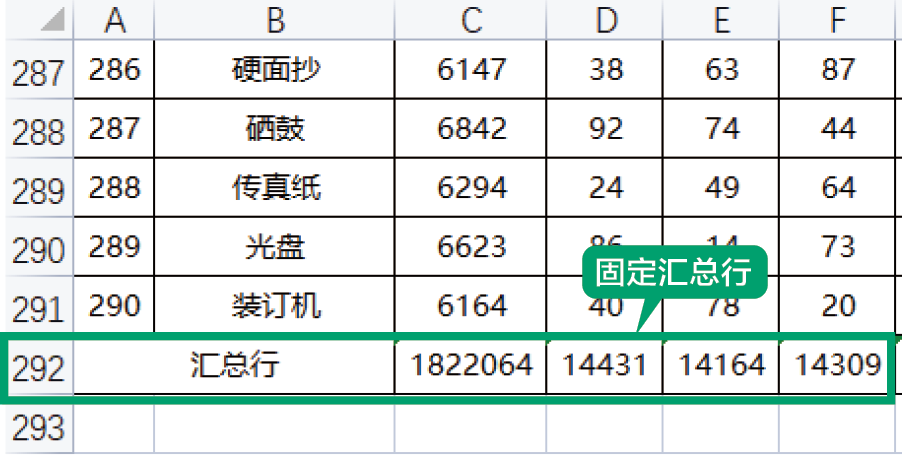 用冻结窗格功能来冻结表头是非常容易的,但是如果要冻结的数据在最后一行或者最后一列,该如何操作?比如下图所示的表格中,最后一行是汇总行,如何固定最后一行?