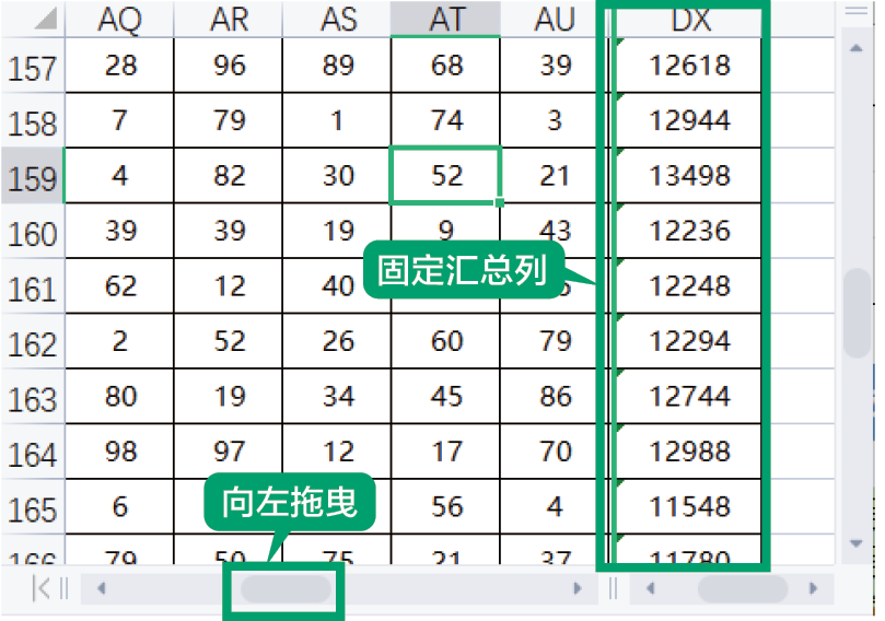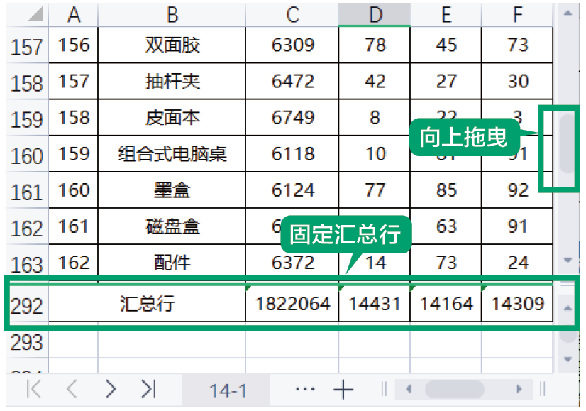 两个区域其实是同一个表格,数据的更新都是同步的,这样在浏览大表格时,就可以固定最后的汇总行了。
