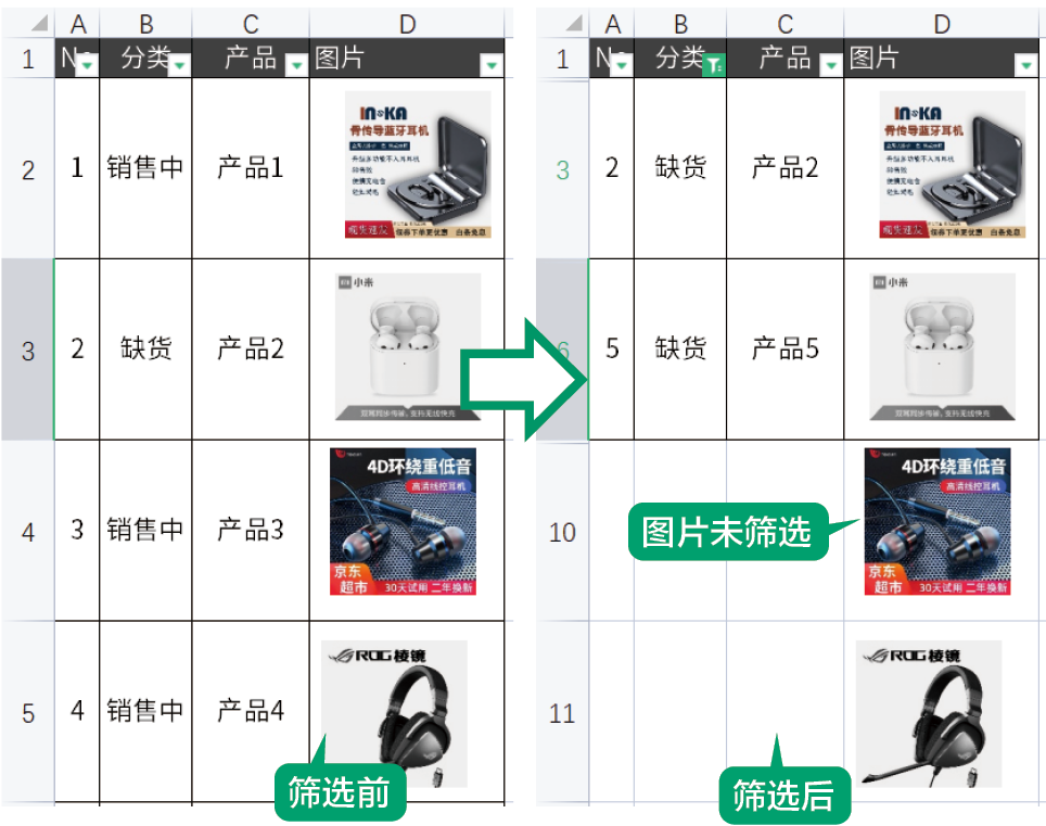 图片插入表格之后,在筛选数据时,图片经常会错乱,不随着单元格变化而变化。